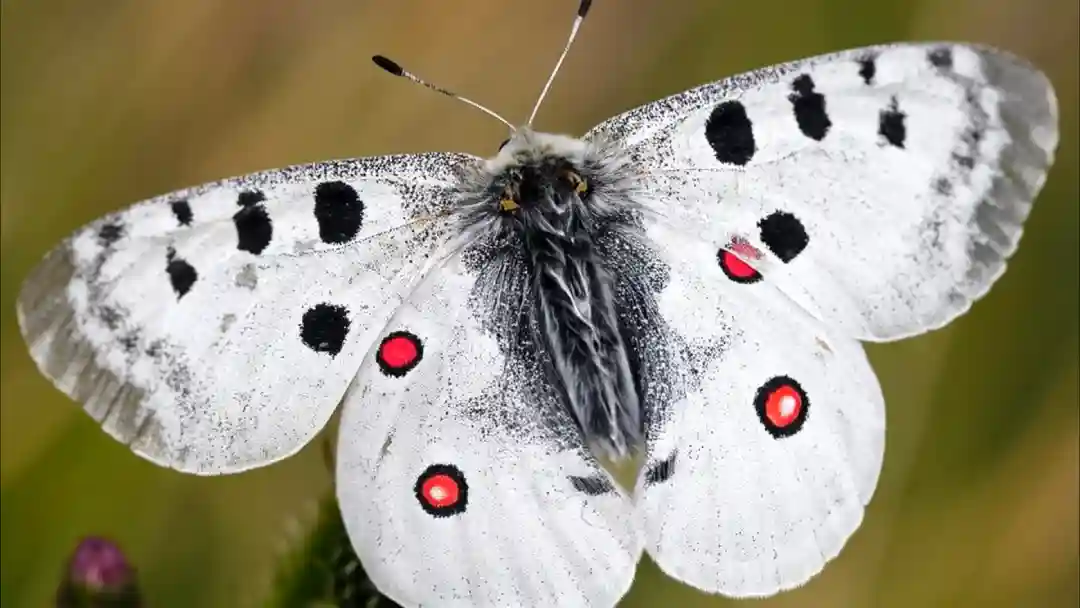Jasoň červenooký, latinský název – Parnassius apollo, Anglický název – Apollo butterfly.
